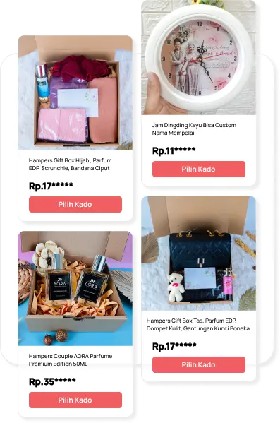Tamu dapat memilih dan membeli kado untuk pemilik acara langsung melalui Elynk. Kami yang akan menyiapkan dan mengirimkan kado tersebut ke alamat tujuan.