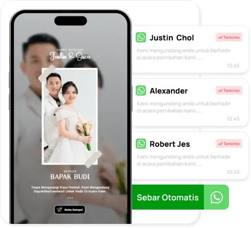 Sebarkan undangan digital ke seluruh tamu secara otomatis melalui WhatsApp. Tidak perlu mengirim satu per satu secara manual cukup siapkan daftar tamu, dan sistem akan membantu proses pengiriman secara terstruktur.
