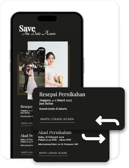 Dalam satu undangan, kamu bisa membuat beberapa acara berbeda (misal akad, resepsi, after party, atau sesi khusus lainnya).